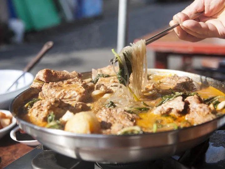 성신여자대학교 인근 돈암시장 안에 위치한 감자탕 전문점 ‘태조감자국’은 1958년에 문을 열어 3대째 이어오고 있는 전통 깊은 맛집이에요. 대표 메뉴인 ‘감자탕’은 뼈다귀 고기와 감자, 당면, 깻잎, 수제비, 떡, 고추, 들깨가루 등을 듬뿍 넣어 끓여내 칼칼하면서도 깊은 맛이 일품이에요. 푸짐한 양과 진한 국물 덕분에 해장용은 물론 든든한 식사로도 인기예요. 뼈, 사리, 채소 등을 추가 주문해 입맛에 맞게 즐길 수 있으니 참고하면 좋아요!