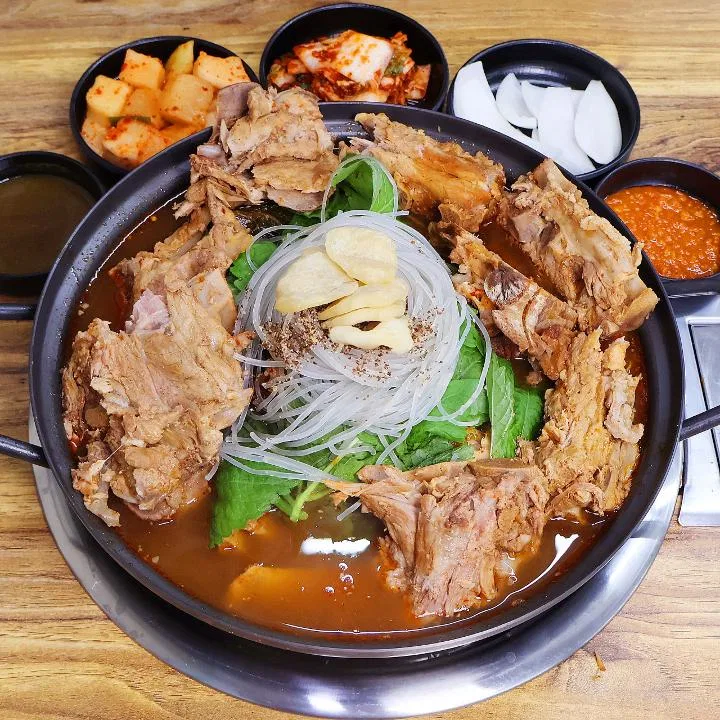 얼큰한 국물과 부드러운 살코기가 어우러진 감자탕!