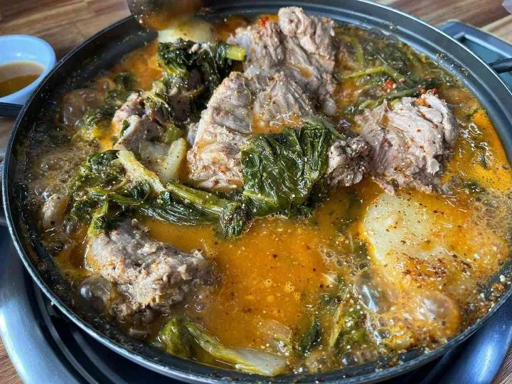 A. 돼지 등뼈에 감자, 시래기, 깻잎, 들깨가루를 넣고 끓인 전통 탕요리로, 진한 국물 맛과 영양이 풍부해 해장용 또는 보양식으로 사랑받습니다.