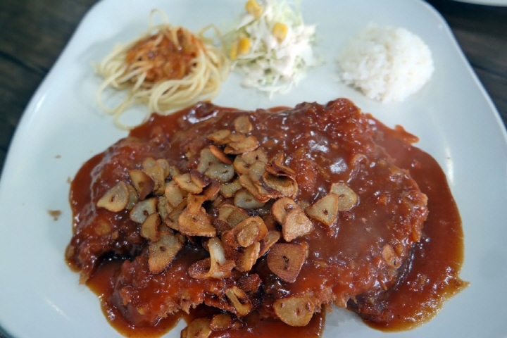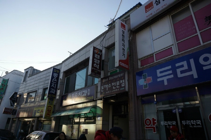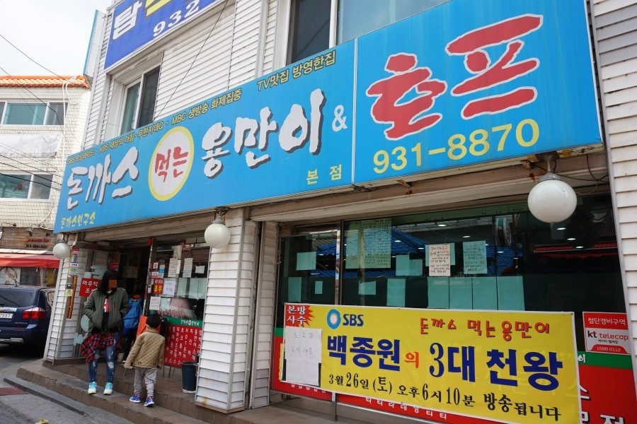 방송에 출연했던 곳임을 단번에 알 수 있는 외관의 '돈가스 먹는 용만이'