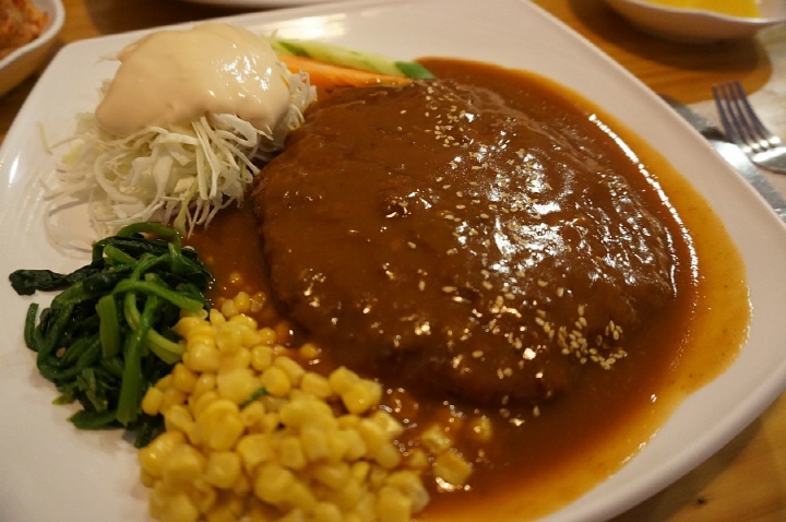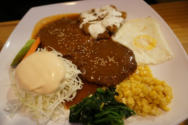 정식 (12,000원)에는 돈가스, 함박스테이크, 생선가스다 한 덩이씩!