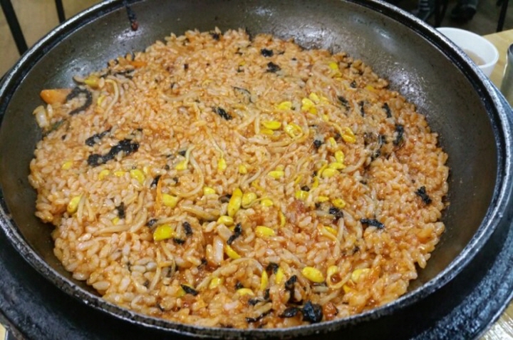 철판에 맛있게 눌러붙으면 밥알 긁어 먹는 재미가 쏠쏠~