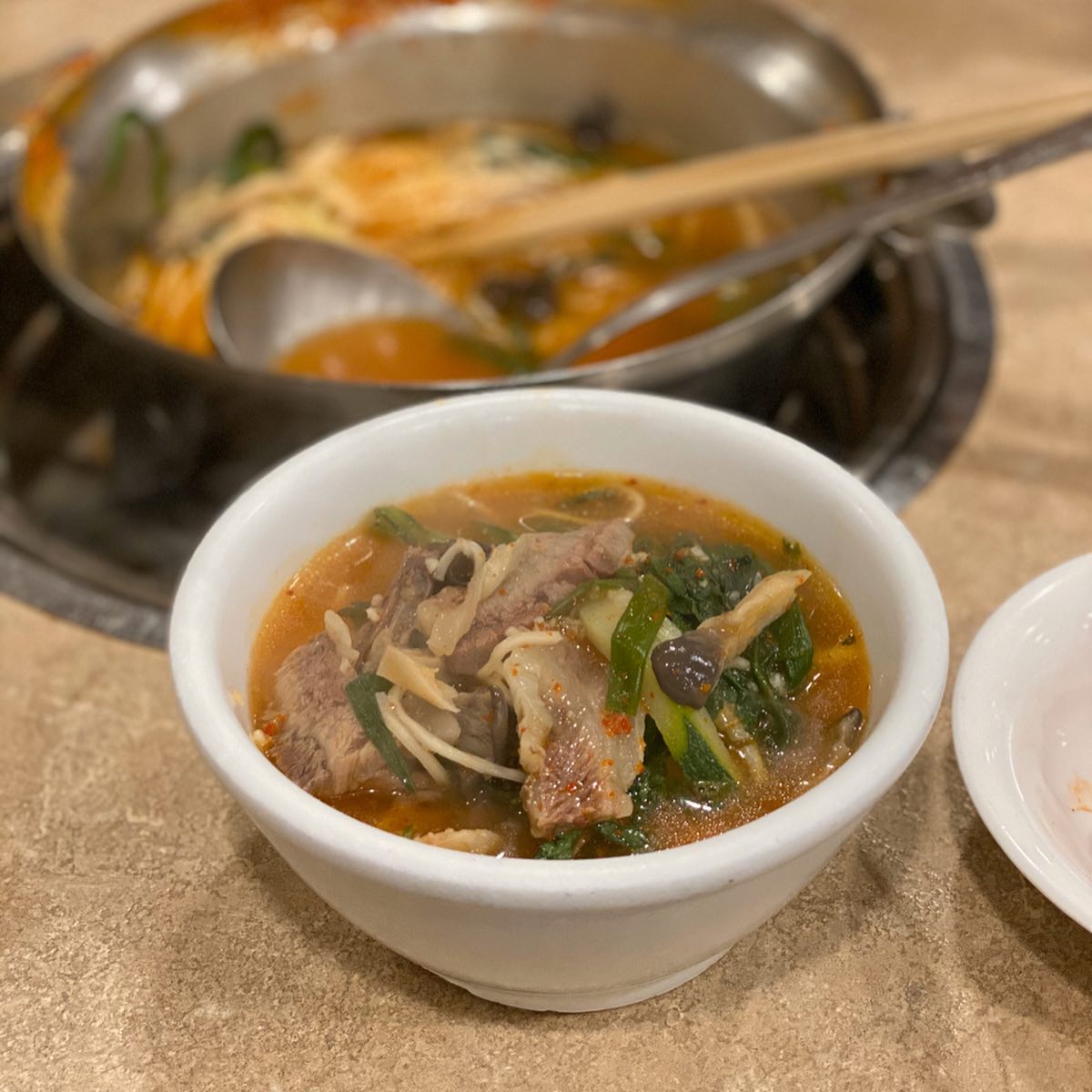 Q. 국물 스타일은? A. 붉고 얼큰하지만 텁텁하지 않다. 후추를 더하면 개운함이 살아난다.