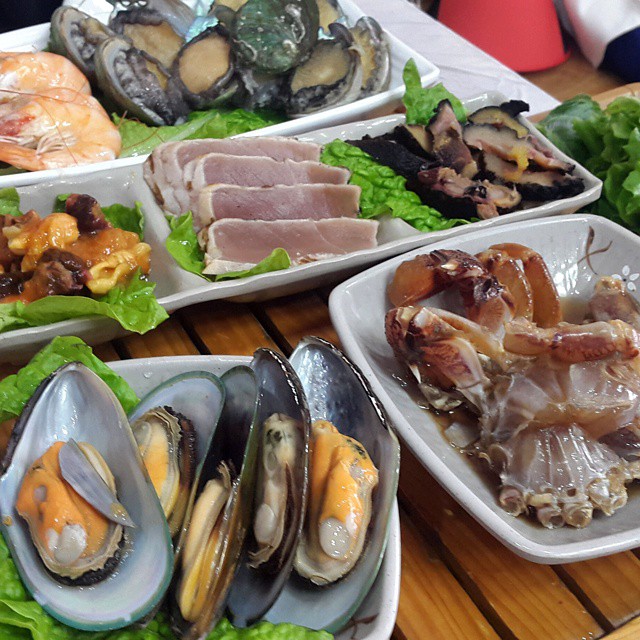 메뉴: 모둠회, 물회, 전복 버터구이, 튀김류, 게우밥, 지리탕 등